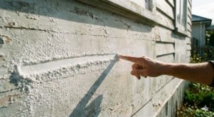 外壁を触ると白い粉が手につく